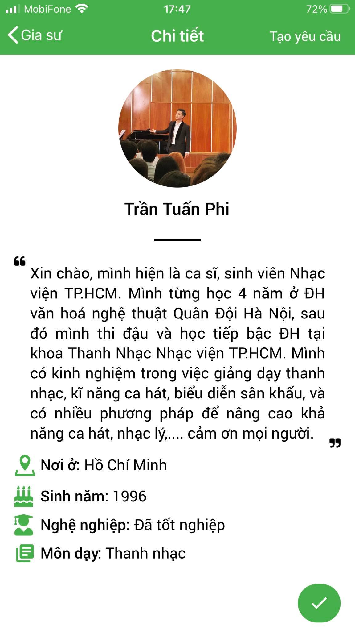 Phụ huynh học viên tham khảo giáo viên thanh nhạc tại HCM tại đây